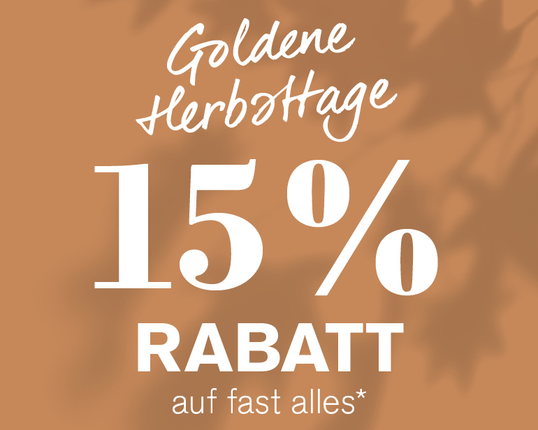 Goldene Herbsttage: 15% Rabatt auf das gesamte Sortiment*