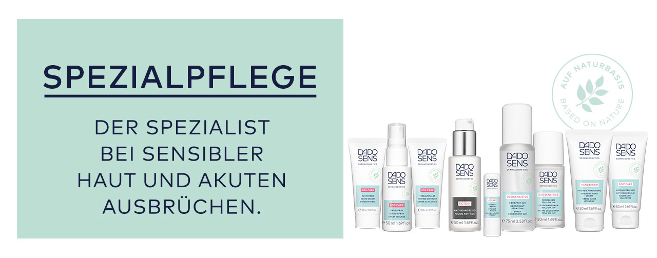 In besonderen Situationen oder für einzelne Körperpartien reicht die tägliche Gesichts- und Körperpflege nicht aus. Die „Spezialisten“ von DADO SENS gehen mit sorgsam ausgewogenen Formulierungen auf die zusätzlichen Bedürfnisse sensibler Haut ein: